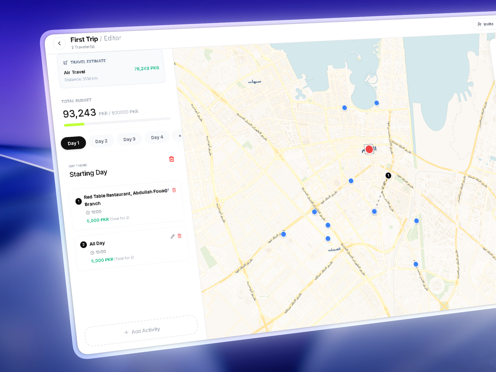 Travellers can create private itineraries, invite friends to collaborate on trip plans, and chart exact routes on the interactive map.